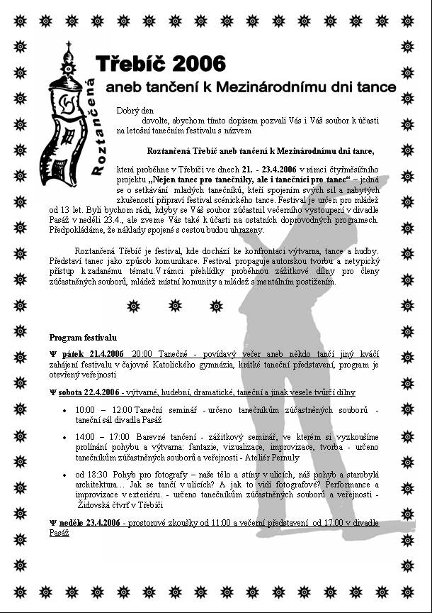 Klikněte pro více informací...  Download... Roztančená Třebíč 2006 - leták